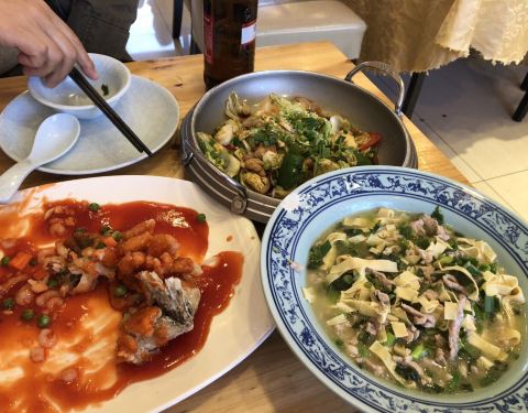 这家饭馆在拙政园附近,我们就住在这一带,中午随便吃点,但是被惊艳了。点了很多但是价格特别便宜味道也很不错,油焖春笋,银鱼炒鸡蛋,虾饼都很好吃。