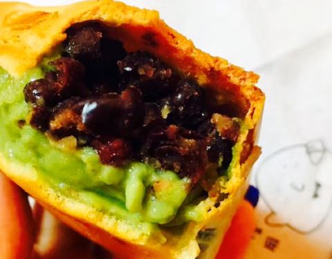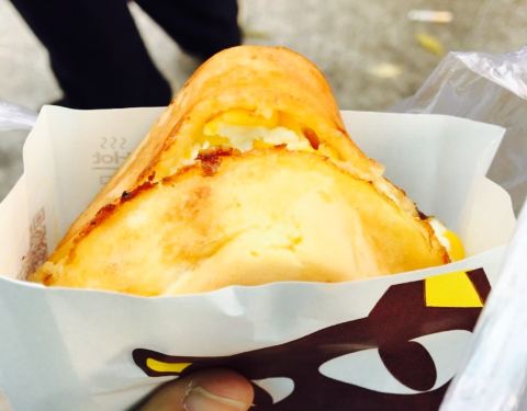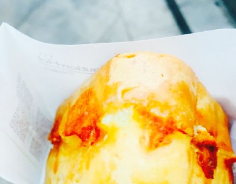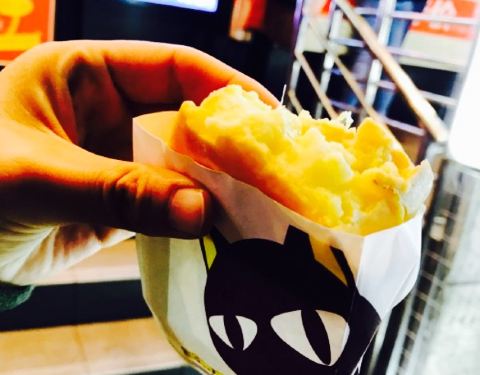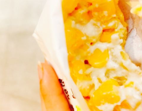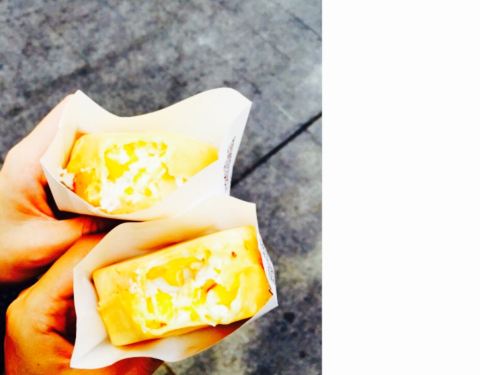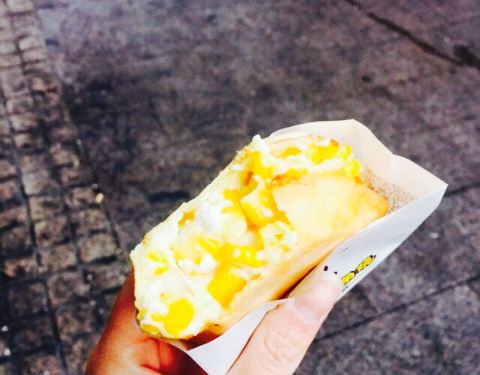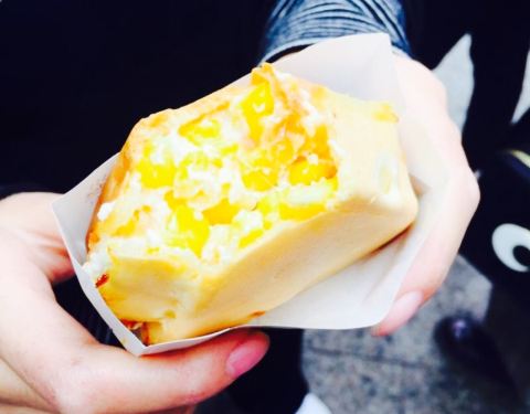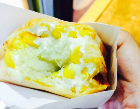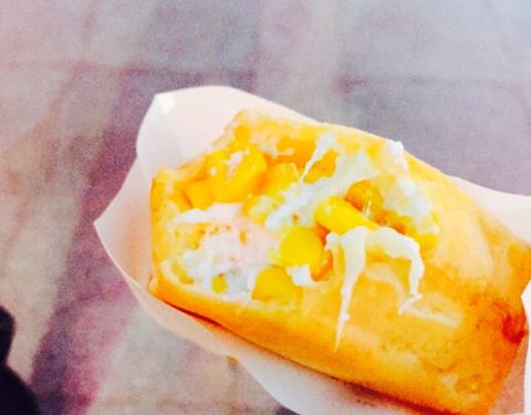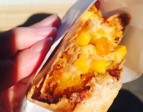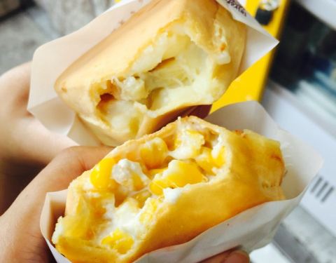 这个这个这个。超级好吃呐,以为是像鲷鱼烧那个样子,也差不多。热腾腾的捧在手上,外皮酥软,馅儿浓稠。我买了芝士榴莲的,芝士很足很足,榴莲味道也很浓烈,还有很多玉米,非常满意特别开心啊。下次来还要吃。...