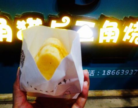 位置就在小木屋一条街上,之所以虽然那天已经吃的很饱了,是因为名字好萌,但还是买了一个。一个不是很大,饭后当个小吃甜品吃吃很不错,三角烧当然是三角形的啦,看上去很可爱。味道挺多的,有点选花眼,最终要了芝...位置就在小木屋一条街上,之所以虽然那天已经吃的很饱了,是因为名字好萌,但还是买了一个。一个不是很大,饭后当个小吃甜品吃吃很不错,三角烧当然是三角形的啦,看上去很可爱。味道挺多的,有点选花眼,最终要了芝士玉米的,外皮很脆,里面满满的都是玉米粒。对于喜欢甜腻的人的确很推荐,芝士给的也好多,吃起来很满足。