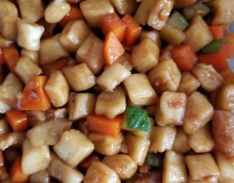 中午吃饭,正好有个支付宝口碑活动的5元立减劵,15元的地三鲜盖饭,只要10元,太划算了。这里吃饭卫生干净,比较放心。