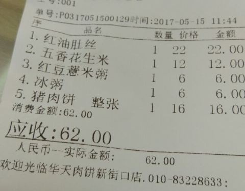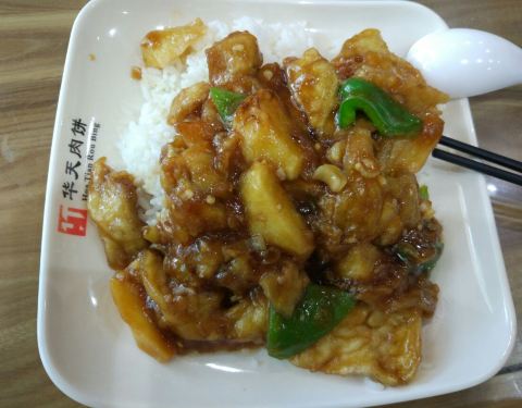 华天肉饼店现在联手支付宝的口碑商户,每天吃饭时间都会有立减劵,今天中午抽了一张5元立减劵,午餐就在这里解决了。一个人吃饭,最怕的就是人多等位,今天还好,一层就有一人一个大桌子,点了地三鲜盖饭,原价15...华天肉饼店现在联手支付宝的口碑商户,每天吃饭时间都会有立减劵,今天中午抽了一张5元立减劵,午餐就在这里解决了。一个人吃饭,最怕的就是人多等位,今天还好,一层就有一人一个大桌子,点了地三鲜盖饭,原价15元,实际支付10元,还是挺划算的,一个人吃足够了。