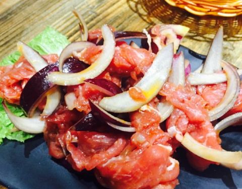 就是吸烟烟鲜果不是很好,水煎牛肉肉质细嫩口感不错,都是提前腌制好的,里面还有洋葱之类的颜值配料...