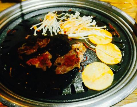 肉挺不错的,切的薄,腌制入味,十分好熟,韭菜和土豆片上也有调味的油,他家的烤盘是不沾盘,所以不...