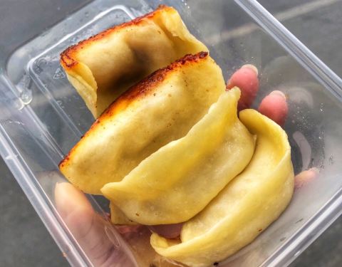 网红锅贴在母校对面,嘿嘿,我知道的好像太晚了,看了网友攻略帖子才明白,平常上下班不路过的关系吧。星期六,高温黄色预警,我没有早饭吃,就去会一会网红锅贴了,早上八点多排队已经好多人了,大家都汗流浃背,队伍前方传来阵阵焦香的热浪,好饿。排队大概一刻钟,期间队伍缓缓前移,我看到一个师傅专门擀皮子,用的居然是空心的PVC塑料管子,像小区换水管用的那种,这是什么新的黑科技么,呃,但是我排也排了,前面人都论斤买的,我还是吃一下吧=_=减掉一颗星是因为这个管子。包锅贴的师傅,擀皮子的师傅,煎锅贴的师傅,清一色男的,包的挺快的,煎的师傅最热吧,衣服都湿掉很多了,在炉子边上还不停滴着汗,我买了二两回家吃,隔壁烤鸭也不错啊,好多阿姨阿叔排队,我就不买了,太热了。再说说锅贴的吃口,我是敞开袋口拿回家的,趁热吃,皮薄汁黏的,调味也很适合上海人口味,加了糖,甜味衬托出肉馅的鲜味,肉馅很酥软,汤汁很粘稠,没有葱花很合我心意,和皮厚的生煎比,我绝对吃皮薄底脆的锅贴啊,生煎是煎包子,皮厚厚底脆脆管饱,锅贴是煎饺,皮薄吃肉入味呀^_^我爱吃肉肉啊。