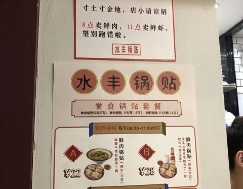 这家是“杨浦三巨头”之一水丰路锅贴的新店,地理位置优越,位于市中心南京西路附近。生意只要以打包为主,堂吃空间狭小拥挤,仅能容纳八席,邻桌大叔吃得满头大汗。 每天11点前卖鲜肉锅贴,之后就都是鲜虾,单...这家是“杨浦三巨头”之一水丰路锅贴的新店,地理位置优越,位于市中心南京西路附近。生意只要以打包为主,堂吃空间狭小拥挤,仅能容纳八席,邻桌大叔吃得满头大汗。 每天11点前卖鲜肉锅贴,之后就都是鲜虾,单份一两价格8-12元,也可升级点套餐。 皮子虽薄略有些粘牙,汤汁部分绝对出彩,清澈见底鲜而不油。白嫩白嫩的小肉馅可紧实了,手剥虾仁有点腥,但可忽略不计。 锅贴总体味道不错,一定还会再光顾。