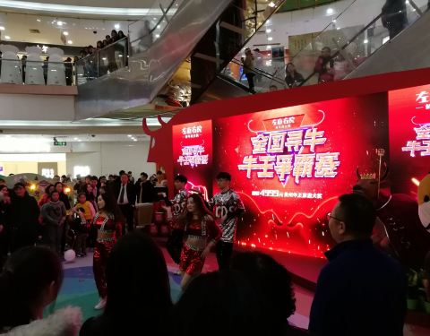在中山公园玩,看到1楼在如火如荼地搞活动,一看是左庭右院在搞牛王争霸赛,现场非常热闹! 不仅有试吃,还有骑单车、转转盘以及体感游戏互动等等,参与互动送代金券,还可能赢取4999元贵州牛王旅游大奖! 小侠一...