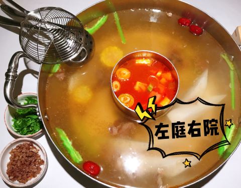 心里种草很久的一家牛肉火锅专门店 周末经过中山公园龙之梦 看到一楼正在举办左庭右院牛王争霸赛的活动 现场参与活动除了有代金券赠送外 还有机会获得价值4999的旅行大奖 有吃有喝还有玩儿感觉真的好开心 特别...心里种草很久的一家牛肉火锅专门店 周末经过中山公园龙之梦 看到一楼正在举办左庭右院牛王争霸赛的活动 现场参与活动除了有代金券赠送外 还有机会获得价值4999的旅行大奖 有吃有喝还有玩儿感觉真的好开心 特别羡慕获得旅行大奖的人 现场还有手打牛肉丸的试吃 味道真心棒 瞬间决定当天的午饭就去他们家吃了 我们锅底选的是香酥牛排+牛骨原汤+牛骨番茄汤 这个组合还挺特别的 一次可以吃到三种口味也是满足 番茄汤浓郁 牛骨吃上去口感微辣 鲜美无比 啃的很满足 肉类点了吊龙 嫩肉 肥拼 现打牛肉丸和牛肉串 食材都非常的新鲜 每个盘子上印有肉的品种和涮的时间 一般都是10秒左右 不然涮的时间太长 肉的口感会老 每片肉的厚度都很适中 肉质吃上去非常的鲜嫩 狂吃也不怕长胖 太喜欢了