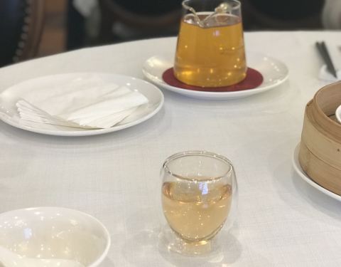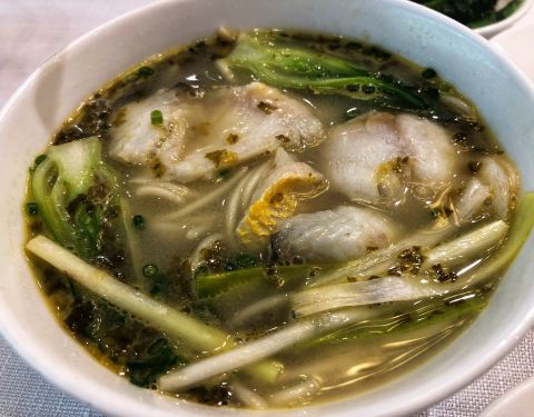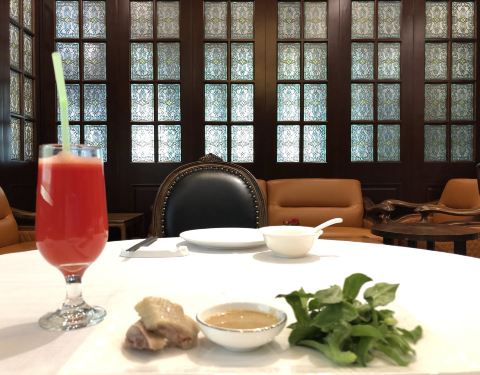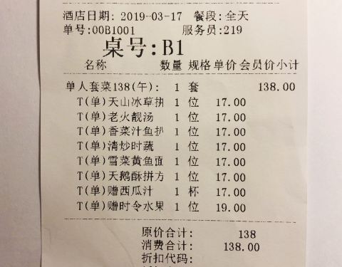 餐厅周去的,菜单是天山冰草、农家咸鸡、老火靓汤、鱼扒和牛尾、雪菜黄鱼面、点心,赠西瓜汁和水果,138元/位,性价比高,环境也好,服务员很热情。
