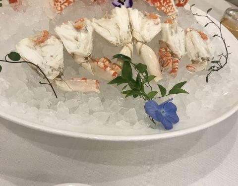 某人某天突发奇想一定要吃潮州冻花蟹,声称看了某个美食家的文章,硬拉着我寻味来到醉辉皇。静安寺过来三十多块,还是蛮远的,周围在修建,灰蒙蒙的让人不舒服,店堂内倒是宽敞明亮上档次!只是上座率实在不高。看了菜单,明明是粤菜嘛!我想吃它们的招牌醉蟹,回答要预定,现点没有,乳鸽也没有,甜点山药糕也没有……基本要啥没啥,我都想走人了,又想跟某人吵架了!他点了一只一斤半的冻花蟹,味道尚可,但并不特别,跟我们在其他地方吃的并无区别。斑节虾还算新鲜,也不特殊。雪花牛肉食材不错,可惜厨艺不佳,要的4分熟,但里面是冷的,请注意,里面生的是对的,但入口不该是冰冷的,这个口感真是浪费了牛肉。其他菜与点心我都不想点评了,很一般,无功无过,不会再去第二次的店家,某人也默默的吃好买完单走人了!