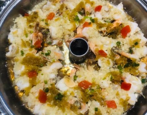 汽锅基围虾,就是蒜蓉虾,里面还有剁椒,味道马马虎虎,不是很辣。 蒜蓉粉丝鲍鱼仔,一口气吃完,还可以。 砂锅鹅翅王,鹅翅非常烂,味道也还不错,必须来一份。 豆花牛腩,豆腐好嫩,牛腩很不错。