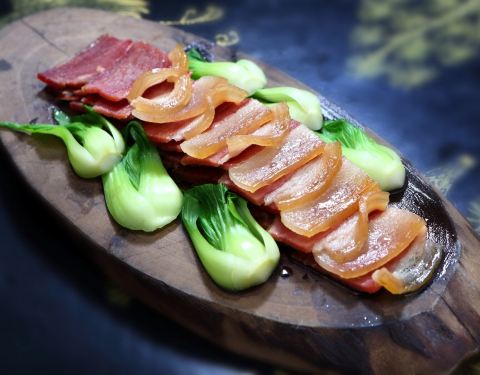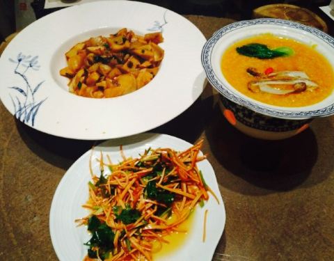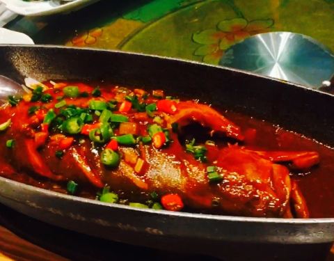 天津的朋友是安徽人,自从认识以来在一起吃饭大部分都是吃安徽菜,这一次天津之行同样安排了安徽菜,徽商故里就是他的吃喝驻地一样,这边很有皖南的徽派味道,去年开车自驾去了黄山九华山和宏村西递等等等,的确很美。都是特色菜,臭鳜鱼比我在安徽吃的还要美味,汤很好喝,干冰散发雾气的虾仁很特别,第一次知道麂子这种动物,野生的肉质就是不太一样。主食是手擀面,用搪瓷茶缸盛出来,汤很不错。用餐前再一楼喝茶地方,好茶好水好服务呀。这边的装修够***,服务特别好,很值得去的。