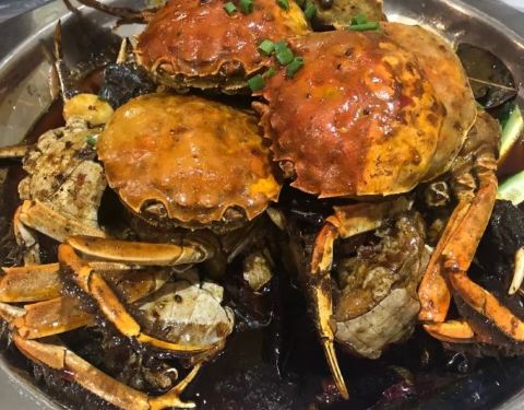...蟹挺好吃的,烧得很入味,肉也很多,辣度刚刚好,圆子也不错,炸的很香,酥脆口感,菜价不贵,很划算