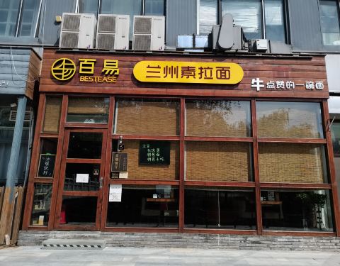 坐路在元大都城墙遗址公园里的百易.兰州素拉面馆内部装修精致,很有特色,每个座位之前都用竹帘子隔开,服务员很热情,素拉面太好了,一定推荐朋友来品尝。