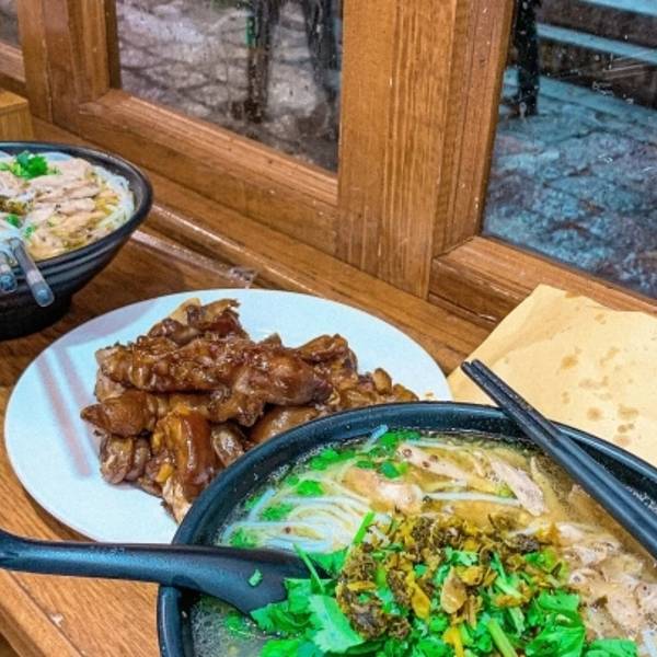 下飞机来古城已经9点了,饿的不行选了这家,真的很好吃!!土鸡米线这个吃的很舒服,米线是偏细的那种,卤猪蹄这个强烈推荐,一下就脱骨而且卤的很到位,卤肉油酥粑粑这个可能放在外面久了味道就比较普通啦。