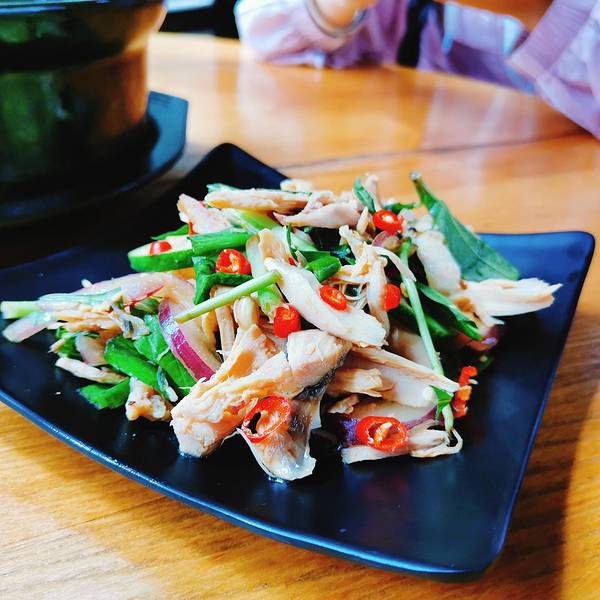 我点的是老母鸡汤米线,团购价18元,还赠送傣味鸡丝小菜,这个汤头实在太好喝了,鲜香可口,汤头浓郁,鸡香味儿十足,米线口感不错,赠送的小菜口味地道,挺傣味的!💰人均