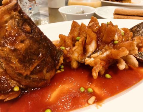 干煎带鱼香脆不柴也好吃,还有烤乳鸽,松子桂鱼等等,菜水品种很多。红烧肉做的特别让人印象深刻,很赞的