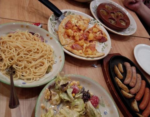 味道不错,份量算足,价格便宜,换成必胜客之类的地方大概得贵一倍多,吧台有饮料,7块无限喝。环境比较嘈杂,人多,熙熙攘攘的,装潢还是可以的。人虽然多,上菜速度还是够快。有些服务员对菜品不太熟,什么味道的问她也不知道,比如有个薯角是没有味道的,我们问一个服务员是不是本来就是这个味,还是确实忘了放盐,服务员一脸懵逼,也不知道是不是以为我们是找茬的被吓到了。。。其实我们只是随便问问,语气也很和蔼。