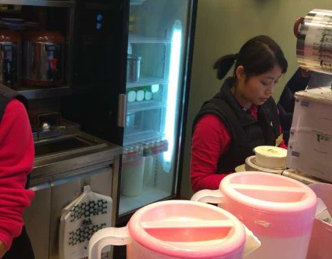 非常知名的一家茶饮连锁专卖店,店面较大,干净整洁,这里为顾客提供数十款现场制作的冷热茶饮,有奶...