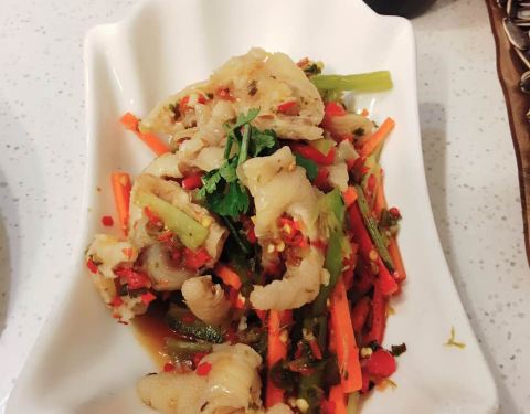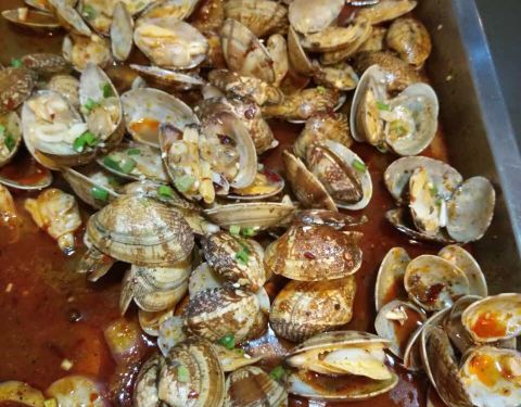 炒蚬子特别好吃,还很新鲜,烤鱼吃的是怪味的,感觉很不错,先辣后酸甜,很喜欢很好吃~