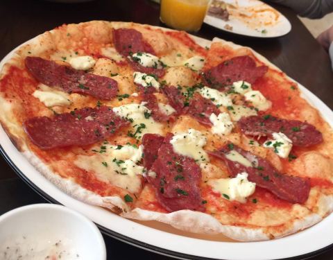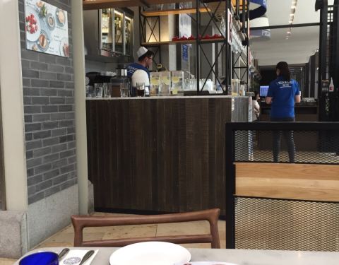 德基二期七楼,幸福蓝海电影院隔壁,看完电影出来小酌一下。在各式披萨店的冲击下这家的披萨没有自己的亮点,鱿鱼圈炸的太老太油,盘子大菜量少……可以点赞的两点,一是服务不傲娇,动作麻利,二是开放式的餐厅让人有露天的即视感,看着来来往往的人群发上半天的呆……