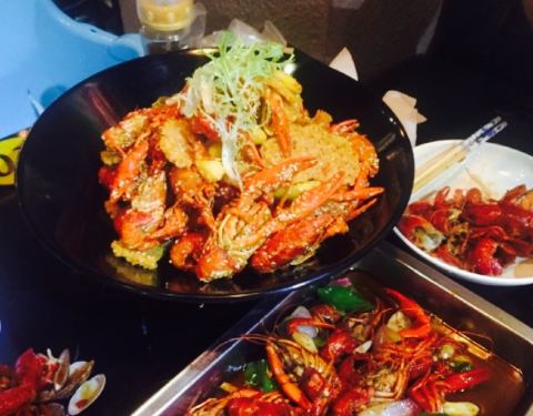 - 大厨掌勺烹制打造的的龙虾大餐绝对养眼又入味哦,四种口味可选,不能吃辣的有蒜蓉龙虾和蛋黄焗锅巴年糕龙虾