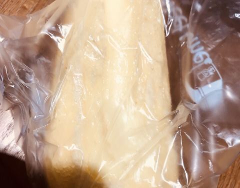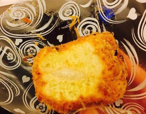 在原先面包店,又开了一家面包店,但问说不是一个老板,这家老板是日本人,赶上开业活动发朋友圈免费领小蛋糕,又在店里转了转,买了个沙拉芝士面包,8.5折,5元钱。赠送的小蛋糕很好吃,能吃出浓郁的奶香味儿。