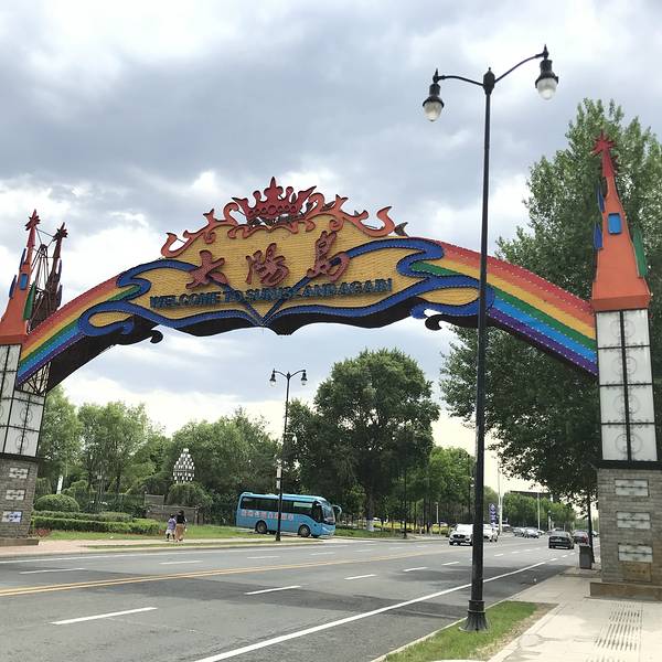 搭乘公交到太阳岛的公交站下车,但是从下车点离景区大门大约还有两三公里的脚程,这第一程就走到有点怀疑人生(当然,打车是可以直接送到大门口的)。入园严格按照检查规范来,预约操作,健康码,口罩,一样不能少。园区有电瓶车,鉴于刚才已经走到两腿发麻,游园的时间有限,20块的园区电瓶车费实在不能省。太阳岛园区确实很大(也许是北方城市的占地面积本就比南方的豆腐块大上好几倍)倘若步行,便可以玩上一整个白天的,而电瓶车在每个景点都有停留,循环路线,行程紧凑的话也不怕错过重要的风景。走到此处,天突地变得阴沉,不一会儿,雨点一滴、两滴......连成了雨线,先是稀疏,然后越来越茂密,终于形成大雨,连遮阳的小伞都挡不住了,还好遇到路过来接游客老奶奶的电瓶车专车,景点也算差不多逛完,便顺道除了园区。北方的阵雨果然童叟无欺,阵雨就是阵雨,也不过十分钟时间,雨停了。离开太阳岛,要到马路对面搭乘公交车,路过了一座很美的立交桥。