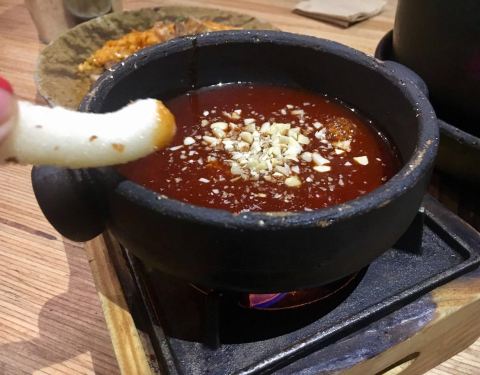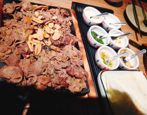 虽说最近中韩关系比较紧张,但是五脏庙管不了这么多,就是想吃韩料~倍乐属于韩料里比较有创意的,选择多多。碳烤肥牛搭配太阳蛋个酸奶酱异常和谐!!芝士年糕也很好吃~