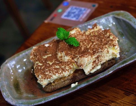 米饭是很烂但是很香的奶油饭 奶油味浓而不腻 鸡块比较辣但好好吃 【自制的提拉米苏】 很有噱头的...