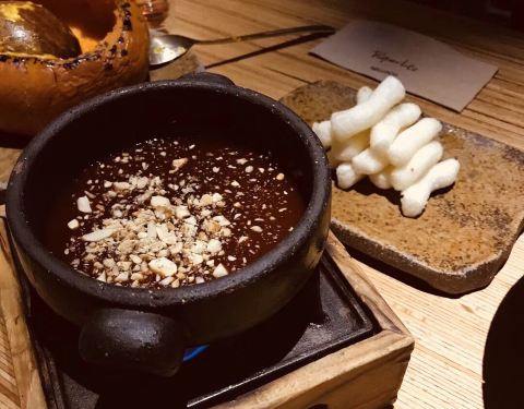 本来想吃韩国帅锅现做的提拉米苏,可惜下架了,还好心心念念的其他几道菜味道都满好,安慰一下受伤的小心灵。 黄金南瓜粥第一个上桌,第一口没觉得惊艳,但是接下来的几勺,奶油的浓香慢慢充盈起来,好喝,难怪能...