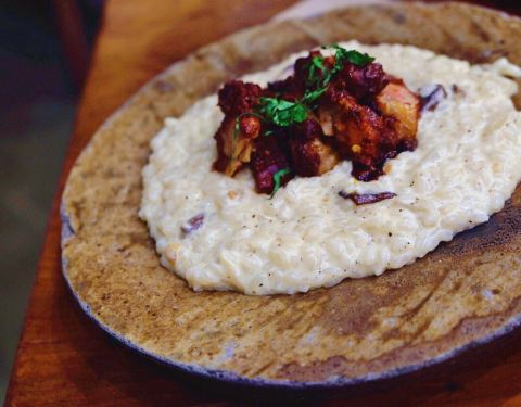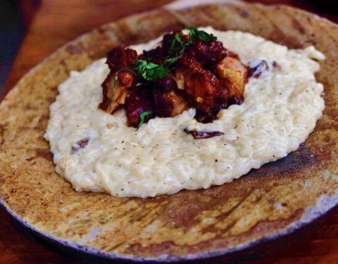 其实味道不错,但是前面几个菜里基本都带有奶油芝士之类的奶制品,胃口已经有些发腻,所以等到尝烩饭...