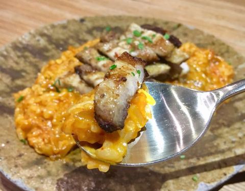 本来想吃韩国帅锅现做的提拉米苏,可惜下架了,还好心心念念的其他几道菜味道都满好,安慰一下受伤的小心灵。 黄金南瓜粥第一个上桌,第一口没觉得惊艳,但是接下来的几勺,奶油的浓香慢慢充盈起来,好喝,难怪能占据招牌菜头把交椅。 芝士饭团外皮香脆,也有内涵,剖开饭团里面芝士挺多的。 很喜烤肥牛,嫩嫩的肥牛肉无论是单吃还是拌着酱汁包饼都不错。 青口海带汤料足足的,青口毛估估有十只的样子,海带和平时家里买的不同,是薄薄的,外形象紫菜,但是口感比紫菜软糯。 番茄泡菜五花肉烩饭最后上桌,其实味道不错,但是前面几个菜里基本都带有奶油芝士之类的奶制品,胃口已经有些发腻,所以等到尝烩饭时,口感有些打折扣。
