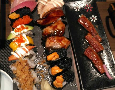 到江宁金鹰闲逛,四楼美食非常诱人,看这的环境特别优雅,欣然进入,原来是属于日本料理,主打海鲜自助,品种很多,说是自助,但是自己不用去拿,只要点就送到桌前,大多是刺身,海鲜都是进口的,喜欢吃海鲜的可...到江宁金鹰闲逛,四楼美食非常诱人,看这的环境特别优雅,欣然进入,原来是属于日本料理,主打海鲜自助,品种很多,说是自助,但是自己不用去拿,只要点就送到桌前,大多是刺身,海鲜都是进口的,喜欢吃海鲜的可以去尝试一下哦!餐后甜点也非常精致,都不忍下口,先当个艺术品观赏一下,拍个照再下最吧!