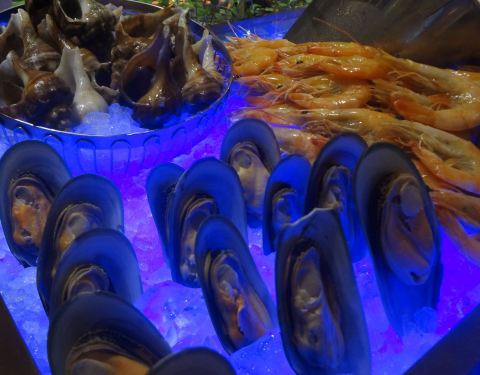 晚上供应自助餐,到店的时候可能是第一位客人,刚好是厨房准备好各种食物,所以一口气拍了很多照片,餐厅挺大的,分成了不同的区域: #海鲜区# #x20;吃自助餐最能够吃回本的就是海鲜了,它这里提供的海鲜种类还...
