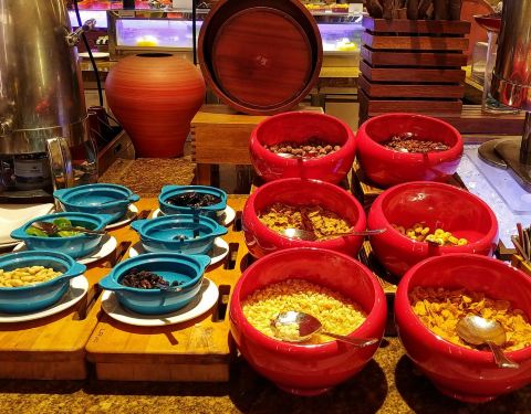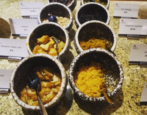 万豪中餐厅。 菜品还是挺丰富的,但是明显比以前有下降。种类少了,做的也没那么精致了。培根肥的一塌糊涂,都不是五花肉那种感觉了。 另外一个很明显的感受就是,服务变差了。除了有人在门口验证身份之外,根本就没有服务员引导入座,没人帮忙倒咖啡,难道是经济下滑裁员了吗?