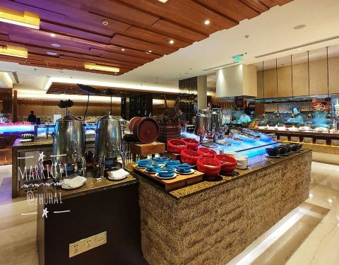 晚上供应自助餐,到店的时候可能是第一位客人,刚好是厨房准备好各种食物,所以一口气拍了很多照片,餐厅挺大的,分成了不同的区域: #海鲜区# #x20;吃自助餐最能够吃回本的就是海鲜了,它这里提供的海鲜种类还算多,非常喜欢的是这里的海鲜都很新鲜,各种虾蟹贝生蚝等等,而且每一位到店用自助餐的客人都可以得到店内限量提供的半只龙虾,而且是一轮一轮焗的,保证了龙虾的新鲜程度; #日料区# #x20;日本菜除了有各种各样的寿司之外,每个人都爱点的莫过于刺身,当然三文鱼是最受欢迎的,每个人都在等的就是三文鱼,而且特别快就一轮,然后又要再上来新的,已经快吃的差不多的时候我出去溜了一圈,竟然还发现了三文鱼腩,毫不犹豫就请师傅把那一条都给了我,旁边就是日式酱油和芥末,味道真的很鲜美; #面食区# #x20;这是它家的一个特色,一般自助餐厅都不会特别设一个面食的区,它家有竹升面、刀削面和河粉,我点了一份竹升面,需要什么配料直接在旁边就可以加:牛肉丸、贡丸、各种蔬菜、各种菇类等等,现场制作,看起来就觉得特别想吃;面条挺不错的,汤底用料也很浓郁,而且师傅搭配的分量刚好,既让客人尝到面条但分量又不会太多; #中菜区# #x20;这里有好几种热炒菜,就是各种小炒和青菜,旁边是一些蒸的点心面包,旁边还有炖汤,这天供应的是茶树菇汤,喝了一碗非常不错; #西式菜区# #x20;这里有一些烧烤类,其中特别好吃的是生蚝,非常新鲜所以味道特别鲜;旁边是一些咖喱虾、焗土豆、红酒牛肉等,个人特别喜欢架台上面的烤羊腿,我开玩笑的说要一只羊腿,师傅竟然当真一样非常爽快就把一只羊腿给了我,这个的味道真心好,超级香而且肉的口感非常好,旁边的意大利饺子一开始就吸引了我,请师父切了一块给我,里面的内容超级丰富,好多味道夹在一起,很特别; #甜品区# #x20;这是我最喜欢的一个区,有各种小点心,有各种蛋糕、有很多的马卡龙和巧克力,有各种口味的冰淇淋,还有巧克力酱,兜一圈下来手中几乎是拿不动了,每一种点心都特别喜欢,它家的甜点里面,要数芒果味道的做得最好,每一种芒果的甜点都尝了,真的是用芒果肉制作的;而且它家的甜点区在自助餐里面算是非常多的一家,眼花缭乱不知道要选哪一种好的节奏,绝对值得品尝。 價格 #x20;每位258➕10[%]