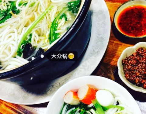 大学时期疯狂吃米线,一下子吃够了。毕业好几年几乎一口不碰。直到男票三番五次地说这家米线入味,外加,很多大连朋友偶尔也会特意驱车来吃,好奇心促使我在某个晚上的7点半,走进了这家店。海鲜锅,满满一大锅的海鲜丸和虾爬子肉,喝一口汤,鲜到起飞。主要是,海鲜丸鲜嫩弹牙,并不是外面卖的那种便宜的圆子。虾爬子肉也很肥很可口。他家特制的辣椒酱也超赞,只是给的很少,加一份要五元。搭配的鲜绿的豆芽菜让米线颜值飙升。目前每隔一段时间就要去一次,基本每次都吃海鲜锅。78。俩人份。一般我会再加一份蔬菜和丸子。人均50吧。这次还点了番石榴味的维他,不太好喝。看见好多人都点攻略锅,下次准备也尝尝。