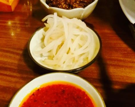 【名稻谷云南过桥米线】。去旅顺玩,看到微博上强烈推荐的旅顺米线店,跋山涉水的赶过去,其实就在旅顺市中心那一带。价钱虽然看起来小贵,但肥牛锅上了后来就震了。比一般的锅大好多,料也非常足,两个人按老板娘的话说,就是管够吃,确实能吃撑。肉酱和调料都很提味儿,尤其是辣酱那盘,实在不是呛人的辣呢??。吃之前一定要喝米线汤,真的挺鲜的。下次去旅顺一定要试试海鲜锅,据说有好多虾爬子呢,也一定要加裙带菜,一定特别提鲜呢??。地址,旅顺口区红光街。