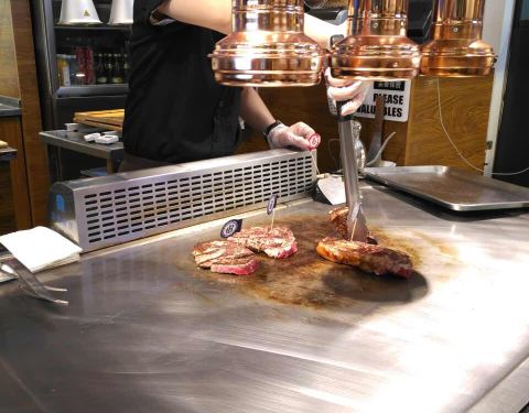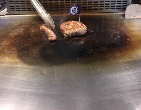 牛排现烤,很好吃,来过好多次了,蔬菜沙拉也是特别好吃,牛肉鲜嫩多汁。