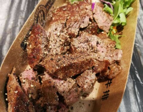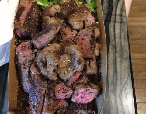 肉是好肉,做的也挺地道的,但就是环境太差了,几张小餐吧台,这都能忍,最不能忍的是餐具,竟然是塑料叉子,而且最最不能忍的是牛排居然被他切成小块儿放在纸的小托盘里就送给你了,完全没有吃牛排的感觉了,媳...