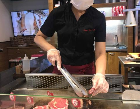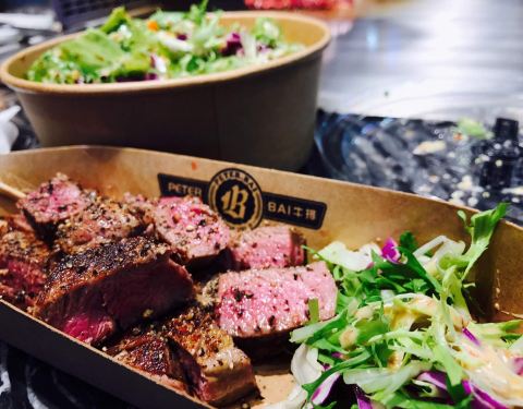 肉是好肉,做的也挺地道的,但就是环境太差了,几张小餐吧台,这都能忍,最不能忍的是餐具,竟然是塑料叉子,而且最最不能忍的是牛排居然被他切成小块儿放在纸的小托盘里就送给你了,完全没有吃牛排的感觉了,媳...肉是好肉,做的也挺地道的,但就是环境太差了,几张小餐吧台,这都能忍,最不能忍的是餐具,竟然是塑料叉子,而且最最不能忍的是牛排居然被他切成小块儿放在纸的小托盘里就送给你了,完全没有吃牛排的感觉了,媳妇儿说,感觉就像吃一个牛肉的感觉。