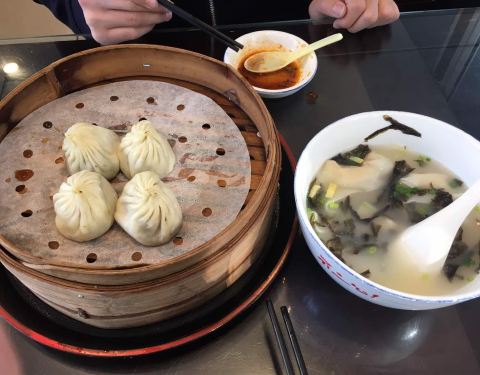 - 小笼包皮薄馅大,有肉馅和素馅,肉的比菜的好吃!你萌千万不要错过喽!觉得男生吃一个也能饱了