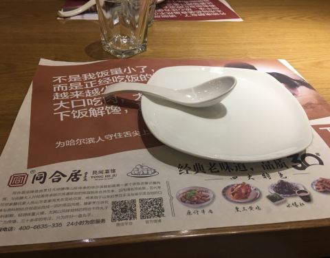 晚饭在同合居民间菜馆,地点在红博购物广场的地下一层。这是一家哈市地方风味的菜馆。友人点了三个菜,都很好吃。尤其是鱼片太好吃了,软糯鲜香,非常可口。炒肝也味道鲜美。环境具有哈市民间特色,宽畅干净。价钱还不贵,很值得推荐!