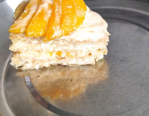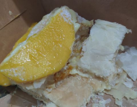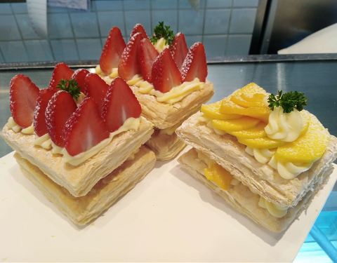 - 品尝了芒果拿破仑,份量蛮不错,酥皮口感酥脆,配合奶油水果蛮好吃