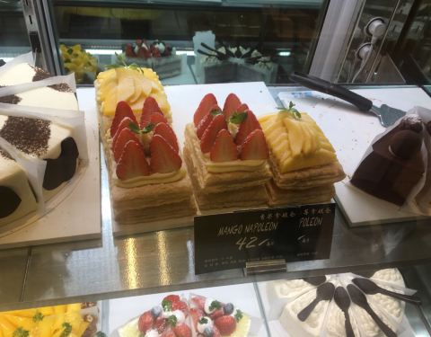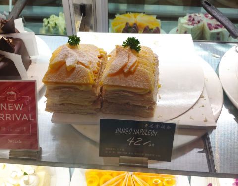 这家店正如其名,柜台里摆放的都是外观精美的各式蛋糕,很是诱人,每片都分别切好,方便售卖。品尝了芒果拿破仑,份量蛮不错,酥皮口感酥脆,配合奶油水果蛮好吃。