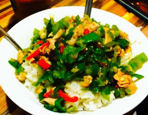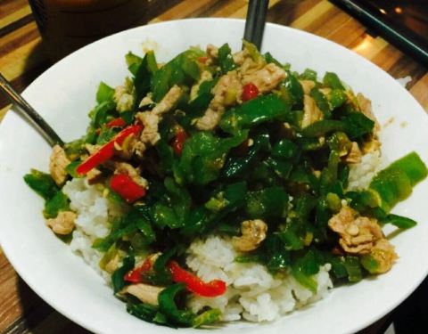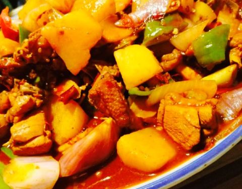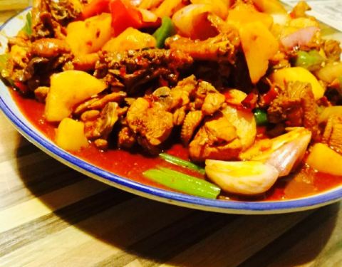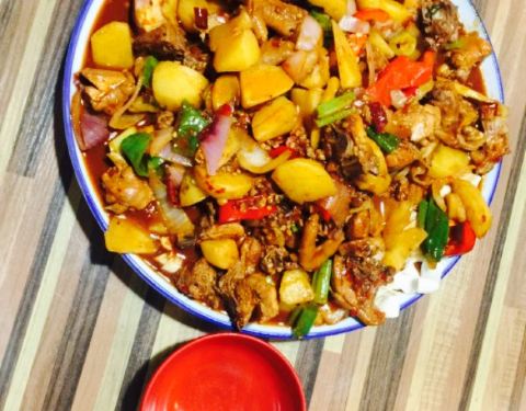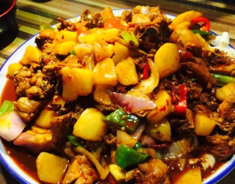 五个妹子一起来的 。这个店很小 。可能平常都不会注意到 。不过进来了过后就很惊喜呀。点的是大盘鸡,确实超级大一份。只需要点一份就能吃得肚子圆鼓鼓的,敲满足。口感实在很棒啊,大盘鸡也很香很诱...