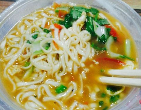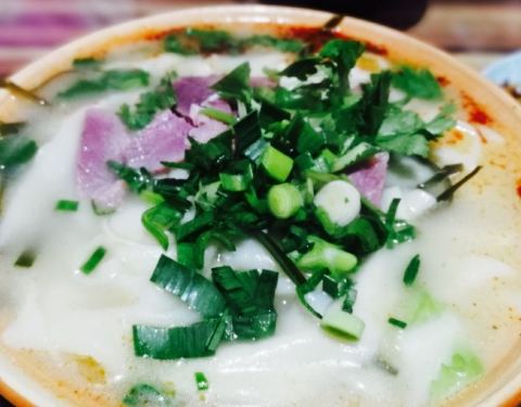 因为喜欢带汤的选择了鸡蛋烩面 。很有味儿。放了香油香喷喷的 。一份小碗刚刚好。虽然店面不大但不影响口味 。老板娘也挺热心。下次还想去试试捞烩面 。??。