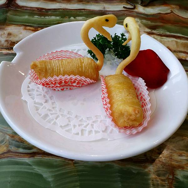 时隔十年再来桂林,桂林这边的市政配套跟城市发展真的是日新月异,整个市容市貌都美观多了,餐饮配套也是越来越好,而其中椿记烧鹅就是其中的佼佼者。 【品牌故事】 椿记创立于1999年,开创之初就定下了以服务为纲,至今春文化也是很多桂林餐饮业争相学习的一种管理模式。 上个月去阳朔的时候就听当地的一个知名餐厅的老板说过这家店,所以这次过来也慕名而来吃一下这边。 一般来说,在旅游城市的餐厅都有淡季跟旺季,但是椿记没有,因为当地人在淡季的时候很喜欢在这边搞婚礼,而椿记也一直致力于婚礼的餐饮配套服务。 【北门店】 椿记目前有七个分店,其中最出名的就是北门分店,据说也是最正宗的一家,一早就知道椿记这边的热闹,所以大约11点半就提前过来了,北门店门口有两排停车位置,大约可以停15台车左右,对于有差不多过千个就餐位置的北门店来说,可以说是抓襟见肘。 进门是一个大气的大厅,拿着就坐纸就有专人带去座位,二楼有几个区域,一个是四人就餐的窗边位置,一个是小厅的椿园,另外是婚礼用的大厅,最后是房间。 【餐饮配套】 餐厅的环境可以说是大气,但是又不奢华高调,据说在这里的婚礼也就只是1000多块钱一围,在这里有婚礼服的免费取用区,款式虽然不是特别的多,但是因为是免费使用的,所以对于如果在现场有什么服装上面的问题的话,都可以在这里拿到一套替换的。 厨房区域是全开放的,就算是切东西的,你也能够清晰的看到他在工作的过程。 洗手间的配套是海底捞式的,很多东西,也有专人服务。 每天的12点十分开始可以自助取水果,水果很新鲜。有火龙果,西瓜,哈密瓜等。 【服务】 服务流程的衔接上面也是做的蛮不错的,每一个步骤都比较的合理,有安排,上菜的时间也很准,没超过漏斗。 态度很不错,响应很快。 【黄金茄盒子】 这道菜是用新鲜的茄子做里,外面铺上一层脆的黄金咸蛋黄,新鲜炸出来,很好吃,外皮拿捏得很准,的确美味。 【烧鹅】 烧鹅是这家店的招牌,价钱算是稍微贵了一点,但是味道的确不错,一个例牌68,四分之一,鹅比广东的烧鹅略瘦一点,酱汁是不一样的有点偏咸,没有酸甜酱,皮脆,好吃,没砸自己招牌。 【蒜蓉油麦菜】 跟广东的炒法有点不一样,将油麦菜切成几段,油不多,比较健康。 【性价比】 三个人吃三个菜,加上自助水果茶位什么的。买单是140块钱,人均40多,没任何优惠,算是合理。