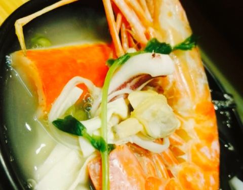 看完电影,想喝点汤,看出这家小店,位于人民路道边,眼前一亮,于是选了这家,麻雀虽小,客人爆满,选了推荐款深海红虾米线59大洋,锅不小,主要是货真价实,两只大大的深海红虾,清新鲜美,幸福指数飙升??,蟹足棒超好吃,蚬子,鱿鱼,海螺丸,鹌鹑蛋等,配料丰富,点了份秘制辣肉酱5元,满满的良心啊,蘑菇和肉酱完美组合,很赞。他家的小咸菜味道很棒,椒麻爽口。米线份量不多,只是有汤就好,汤头鲜美。下次来尝试下其它的口味,看到居然有三文鱼米线????????。