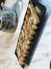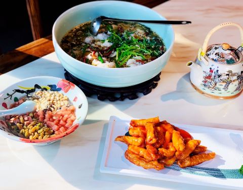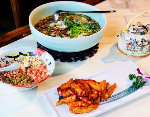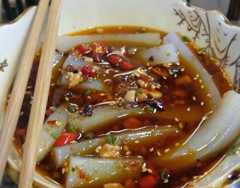 位于钦州北路田尚坊二楼,靠近柳州路。谭记的餐位分室内和室外部分,六月的上海坐在室外吃川菜是件很惬意的事情。他们家的菜品在川菜里中规中矩,说不上出挑,但味道还可以,象腰花和鸡胗,就是主材好像少了一些,盘子里一大半都是配菜。象很多川、湘菜里剁椒鱼头都配面不同,他们家的鱼是没有配面的,但可以单点。可面上来才发现,不是想象里的鱼面,而是普通的龙须面,味道先不加评论,买单时才看见,一碗普通的龙须光面……18元。